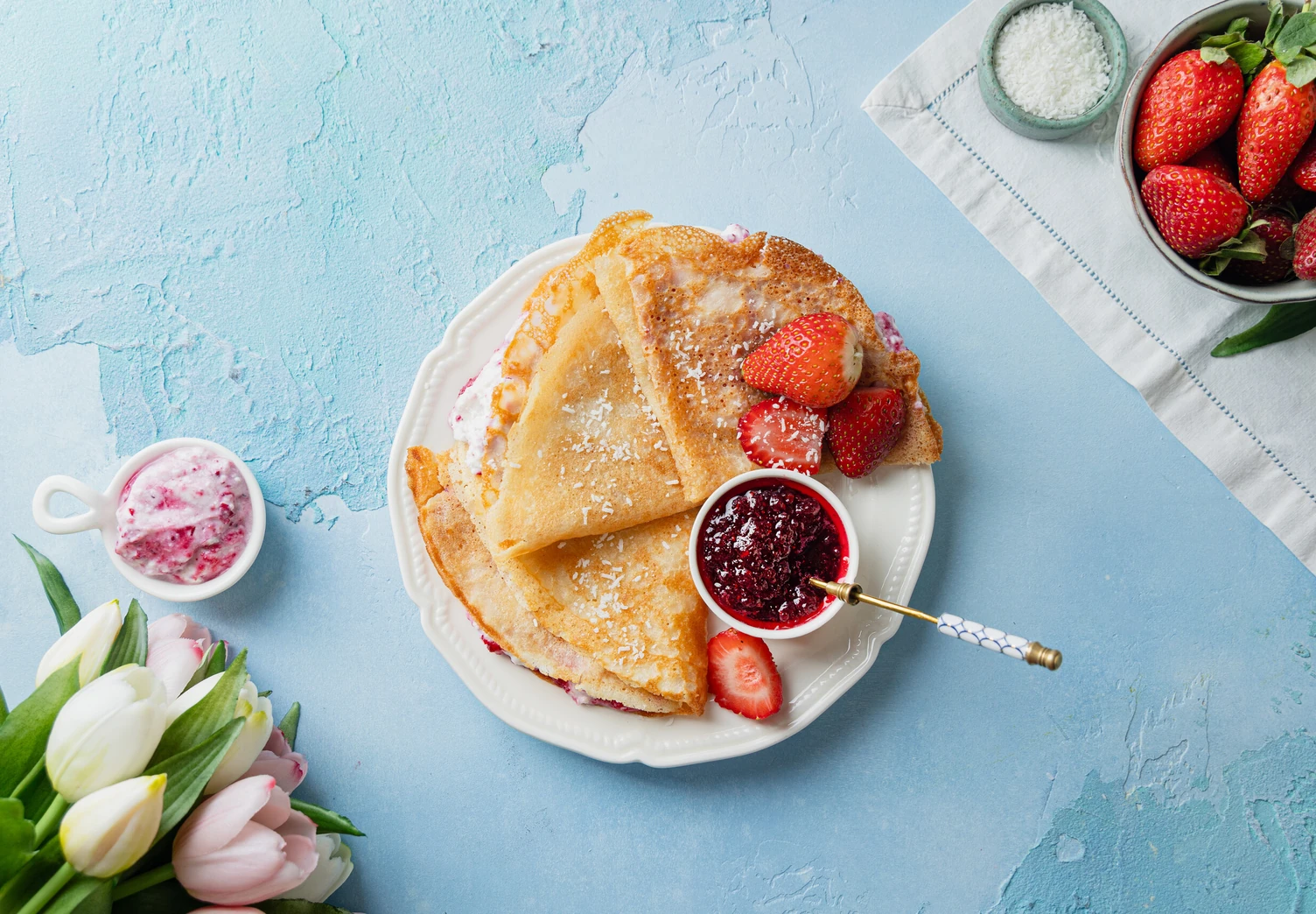 Воздушные блинчики с насыщенным кокосовым вкусом и идеальной текстурой. Подавайте их просто так с чашкой чая или заверните в них нежную рикотту с ягодами. Полезно и очень вкусно.
