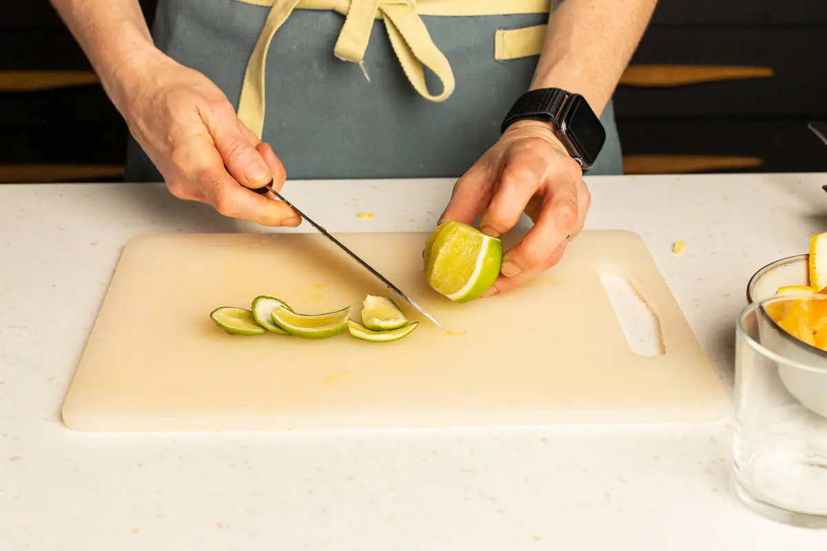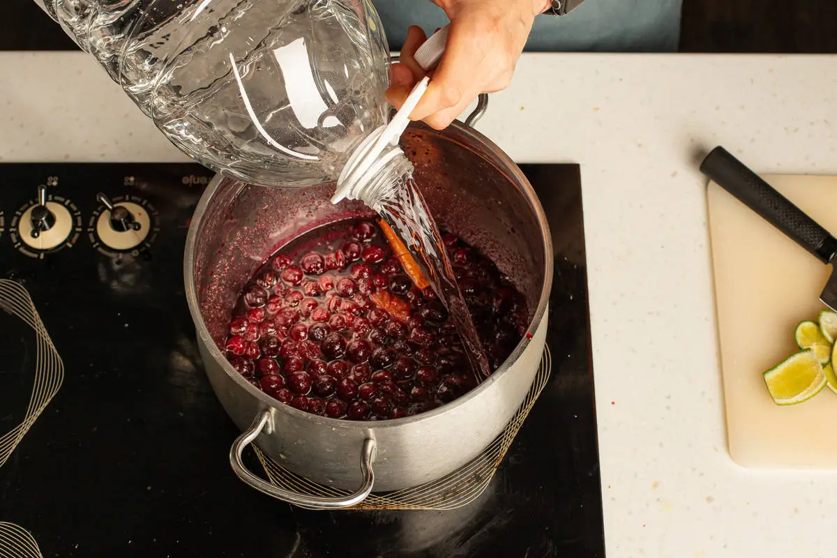 В кастрюле соедините сахар, лайм, вишню и специи, влейте воду.