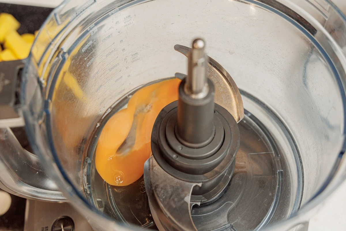 Добавьте соус терияки, чёрный перец, соль и чеснок, снова перемешайте комбайном до однородности.
