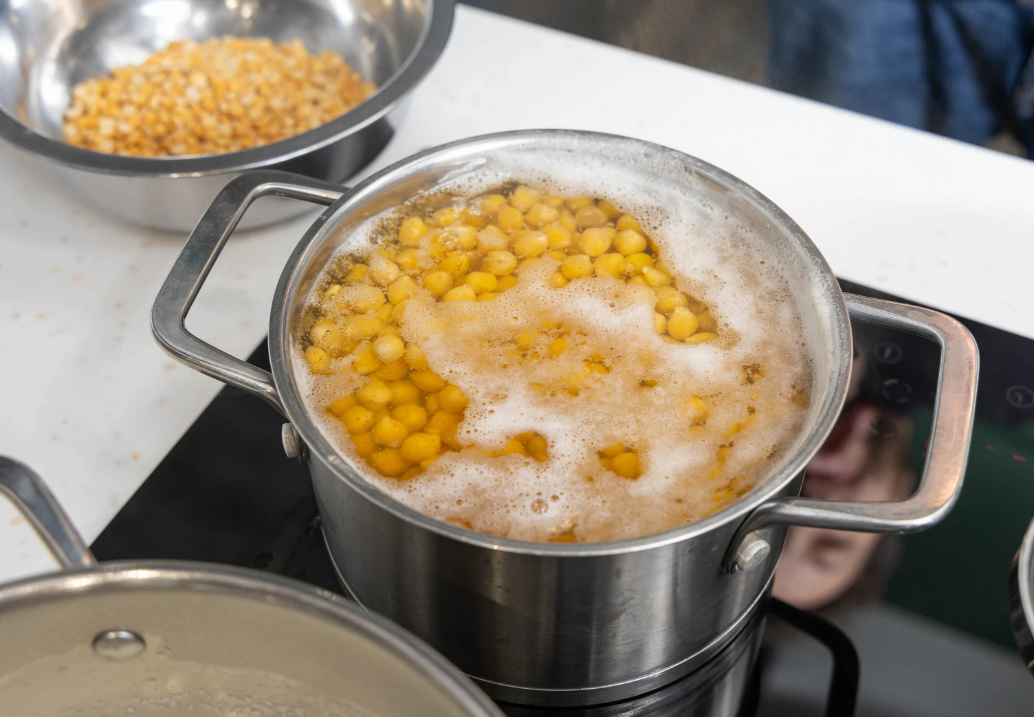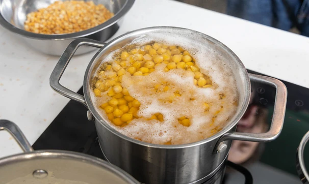 Замочите нут в холодной воде на ночь, затем отварите до готовности.