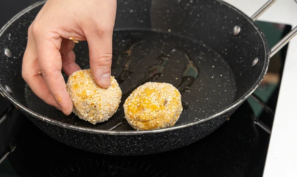 Обжарьте котлеты с двух сторон до золотистой корочки, затем накройте сковороду крышкой и доведите их до готовности на медленном огне в течение 5–6 минут.