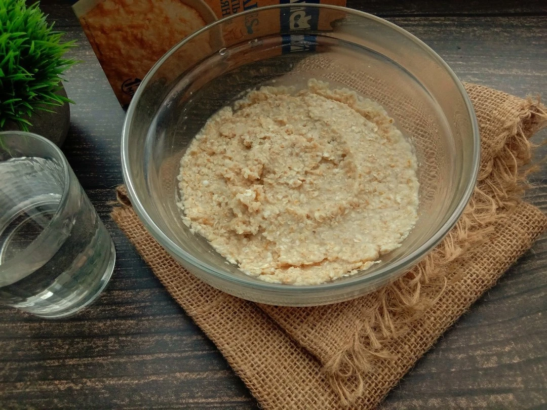 Вскипятите воду и залейте овсянку. Дождитесь, когда хлопья впитают воду и набухнут.