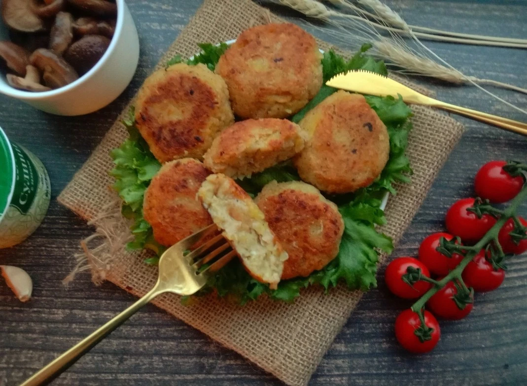 Предварительно разогрейте сковороду с растительным маслом. Жарьте котлеты на среднем огне под крышкой примерно 7 минут с каждой стороны до образования золотистой корочки.