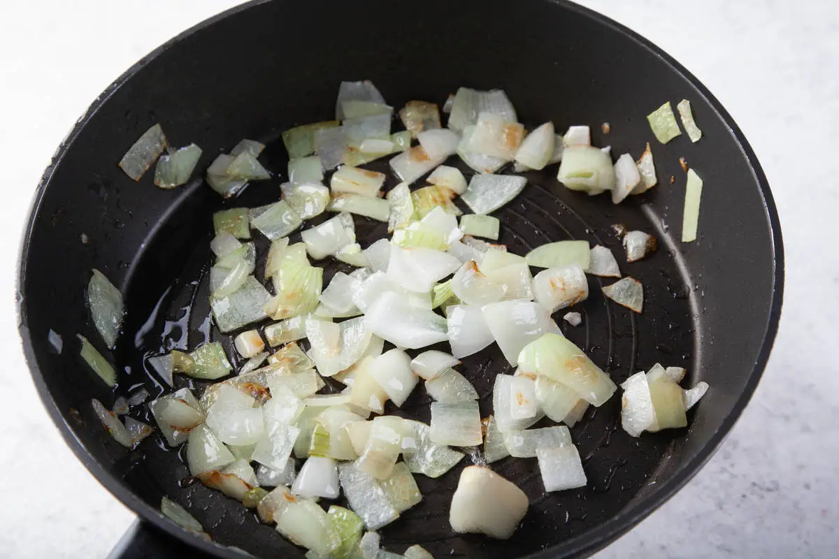 Лук измельчите и обжарьте на сковороде. Также его можно не обжаривать, а добавить в фарш сырым, это дело вкуса.