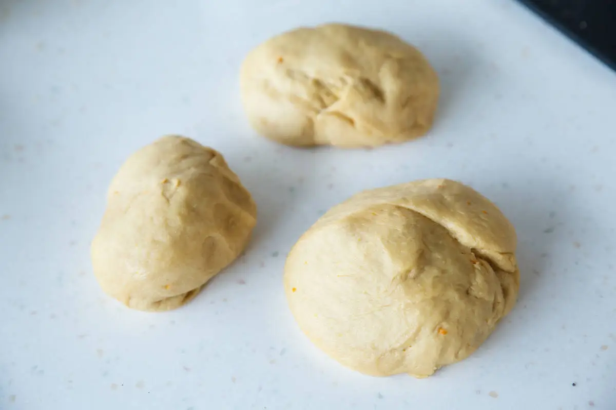Поднявшееся тесто осадите, разделите на три равные части, скатайте их в шары и оставьте ещё на 15 минут. Порубите орехи и шоколад.