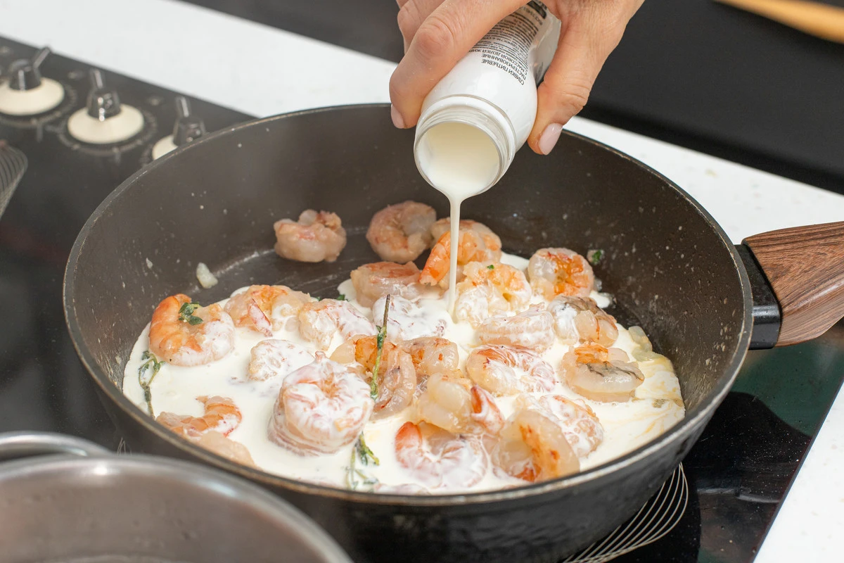 Креветки в сливочно-чесночном соусе — вкусная закуска, которая будет хороша и для праздничного застолья, и для домашних посиделок. Вы можете подать такие креветки просто с багетом, а ещё это полноценный соус к пасте.