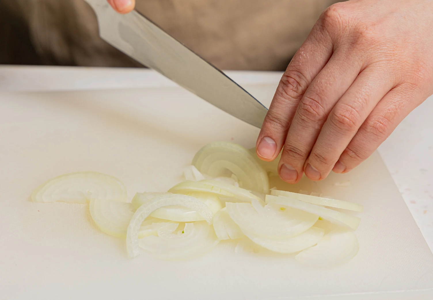 Лук нарежьте полукольцами, чеснок мелко порубите.