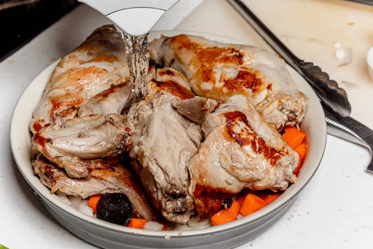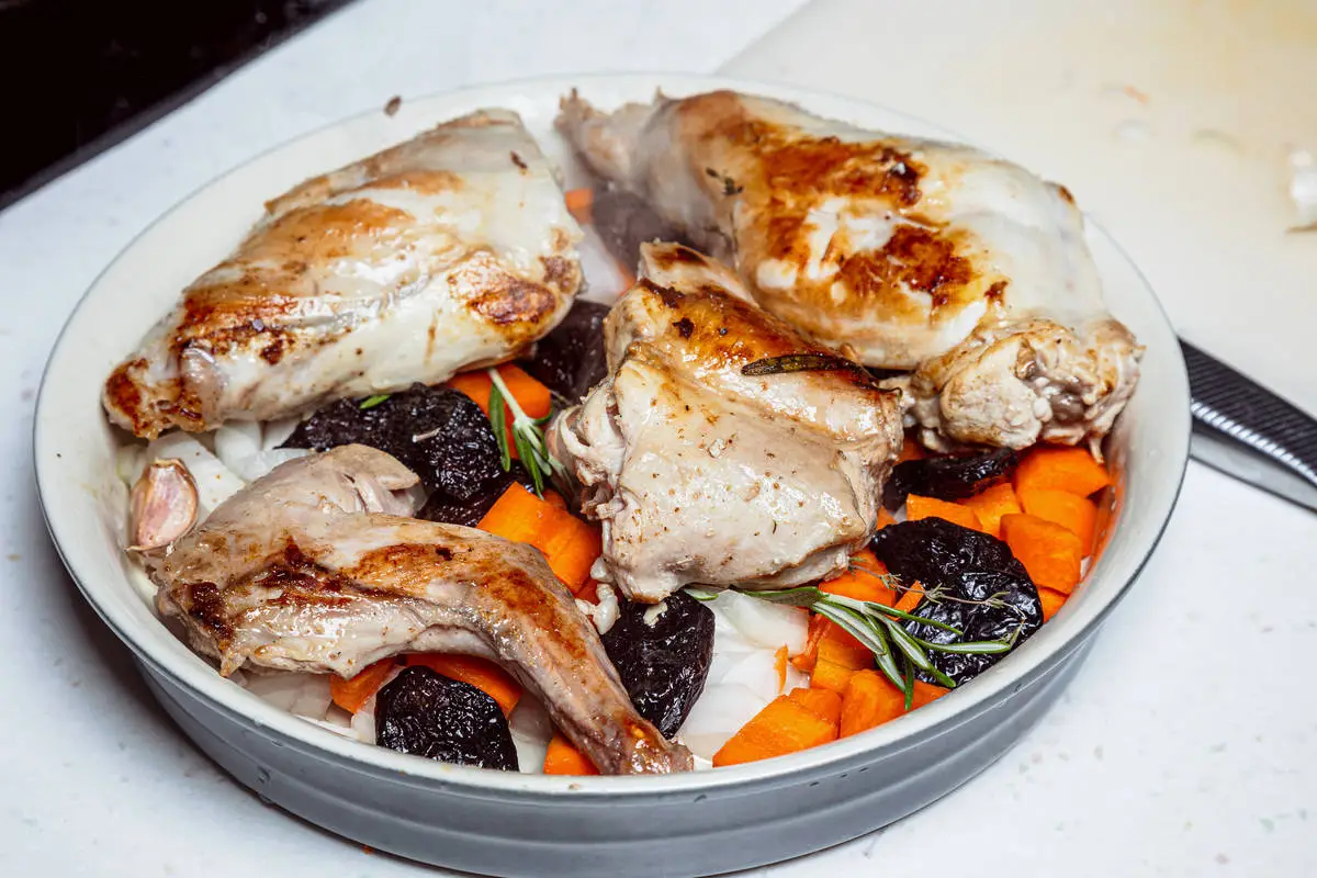 Рецепт «Кролик в духовке с картофелем и черносливом»