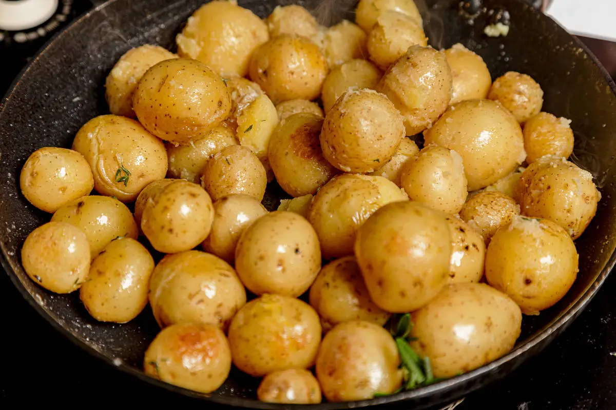 Отварной картофель обжарьте на сковороде на сливочном масле с солью и листиками тимьяна.