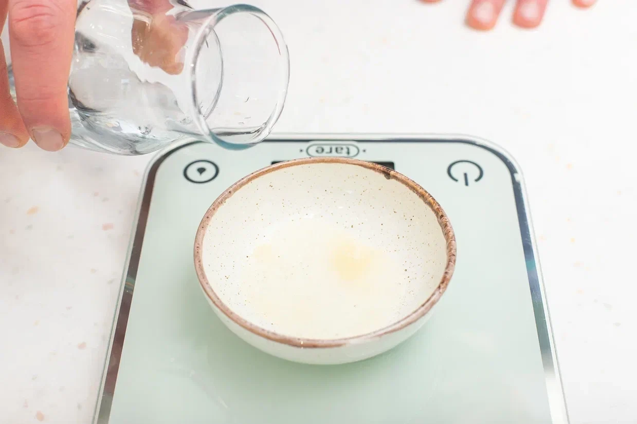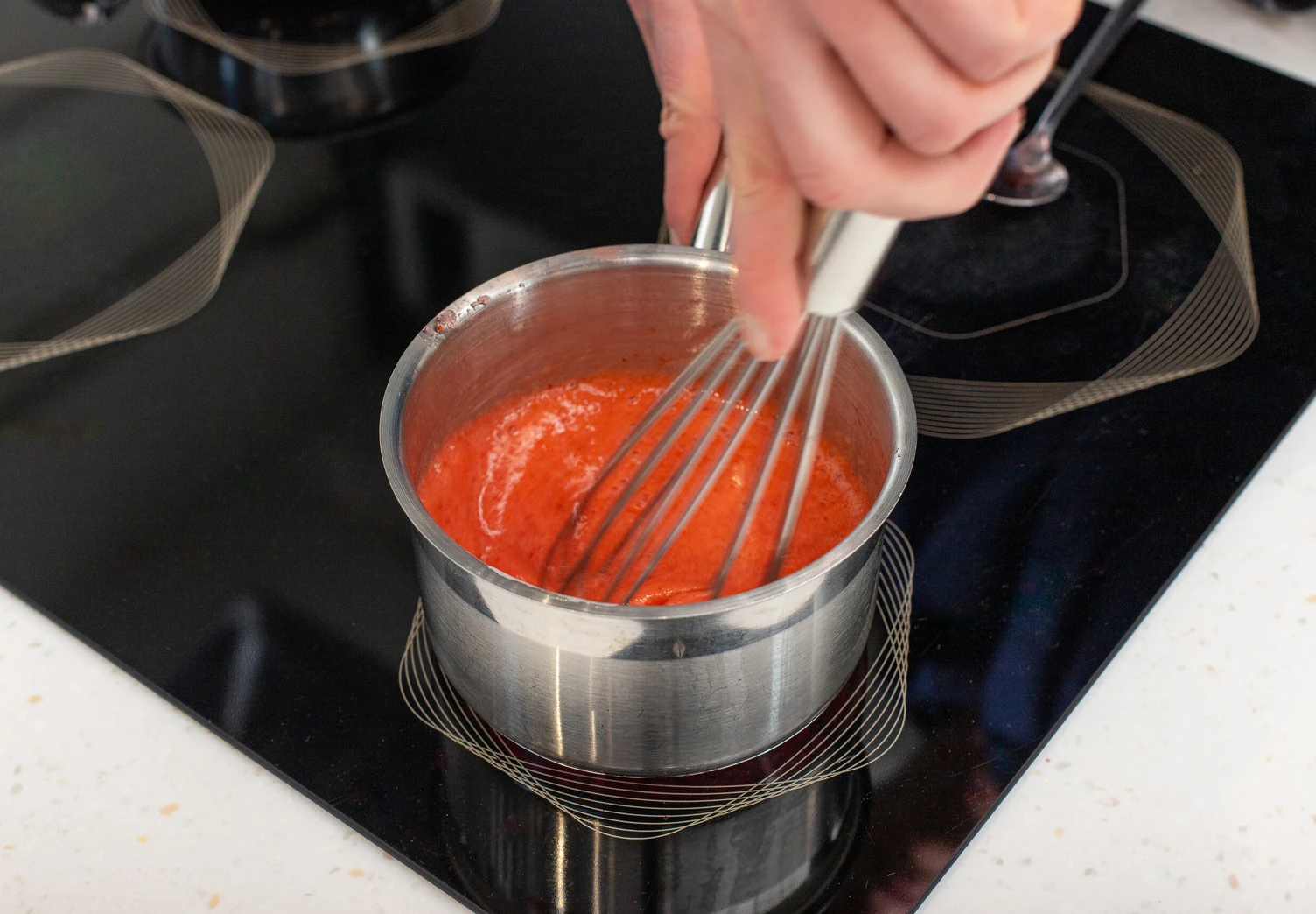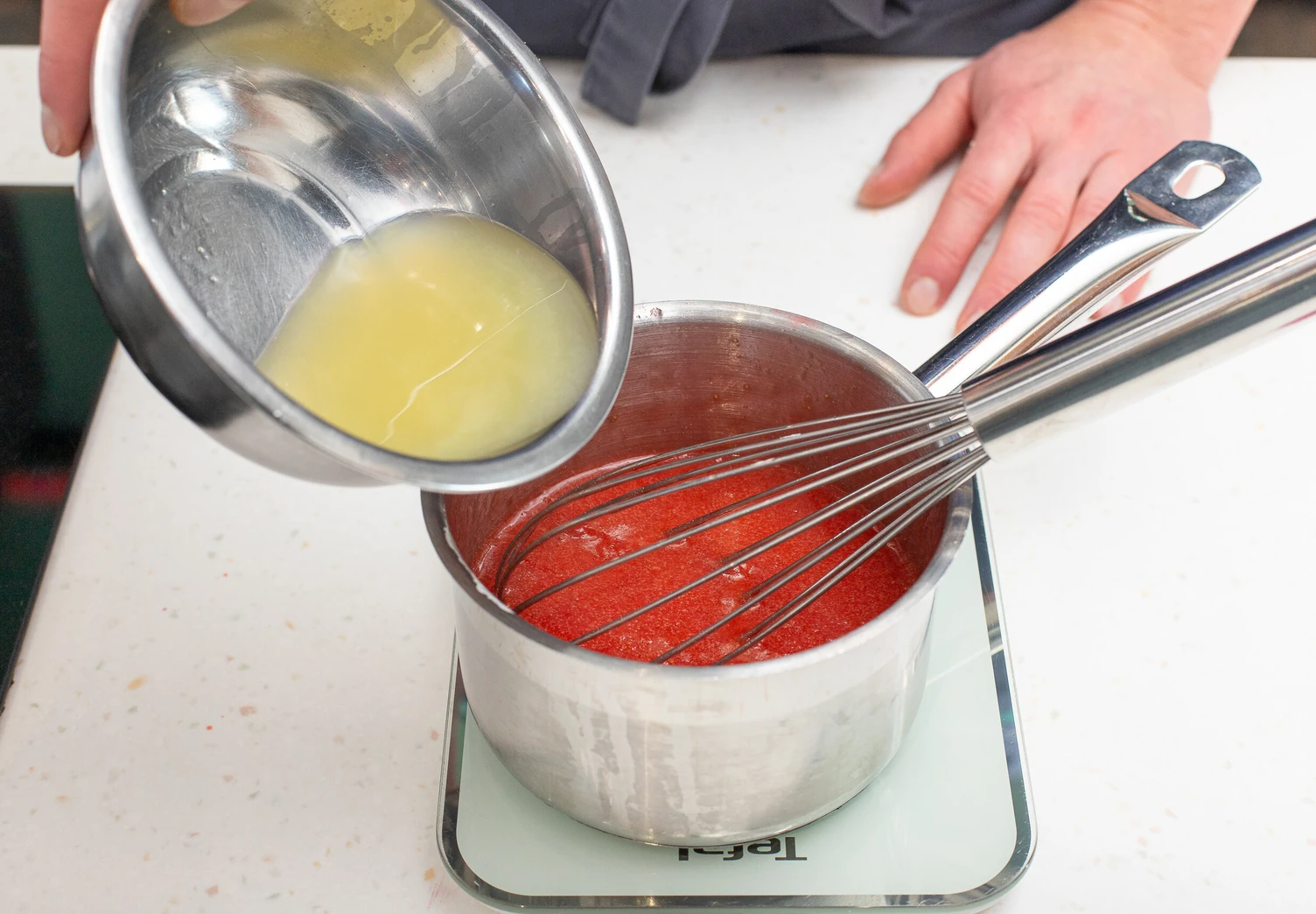 Для меренги воду смешайте с сахаром и нагрейте до 119–120 градусов.