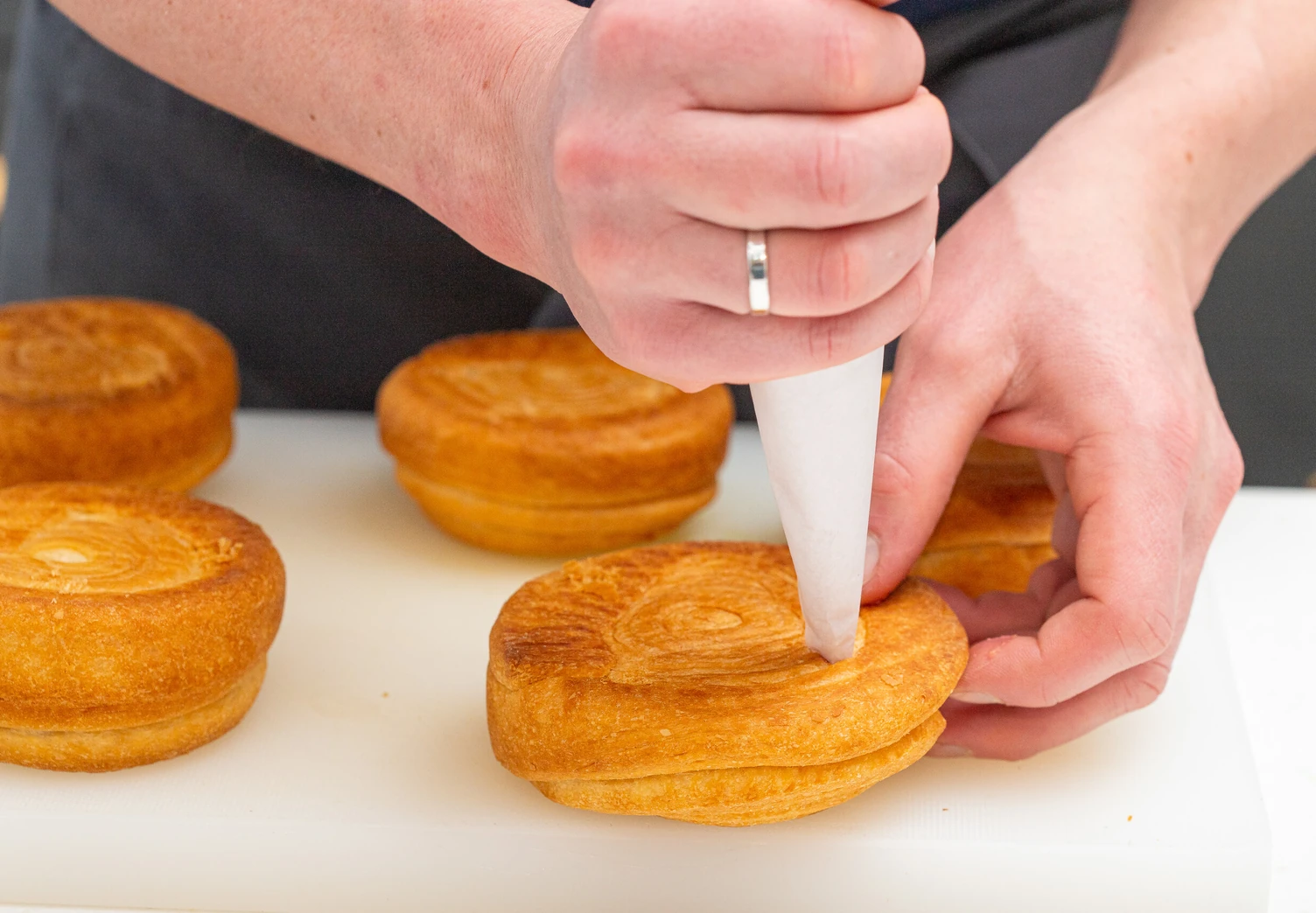 Ещё одна вариация на тему гибридного круассана-шайбы — на этот раз с сочной клубничной начинкой. Этот рецепт подойдёт и для других ягод, например малины или вишни.