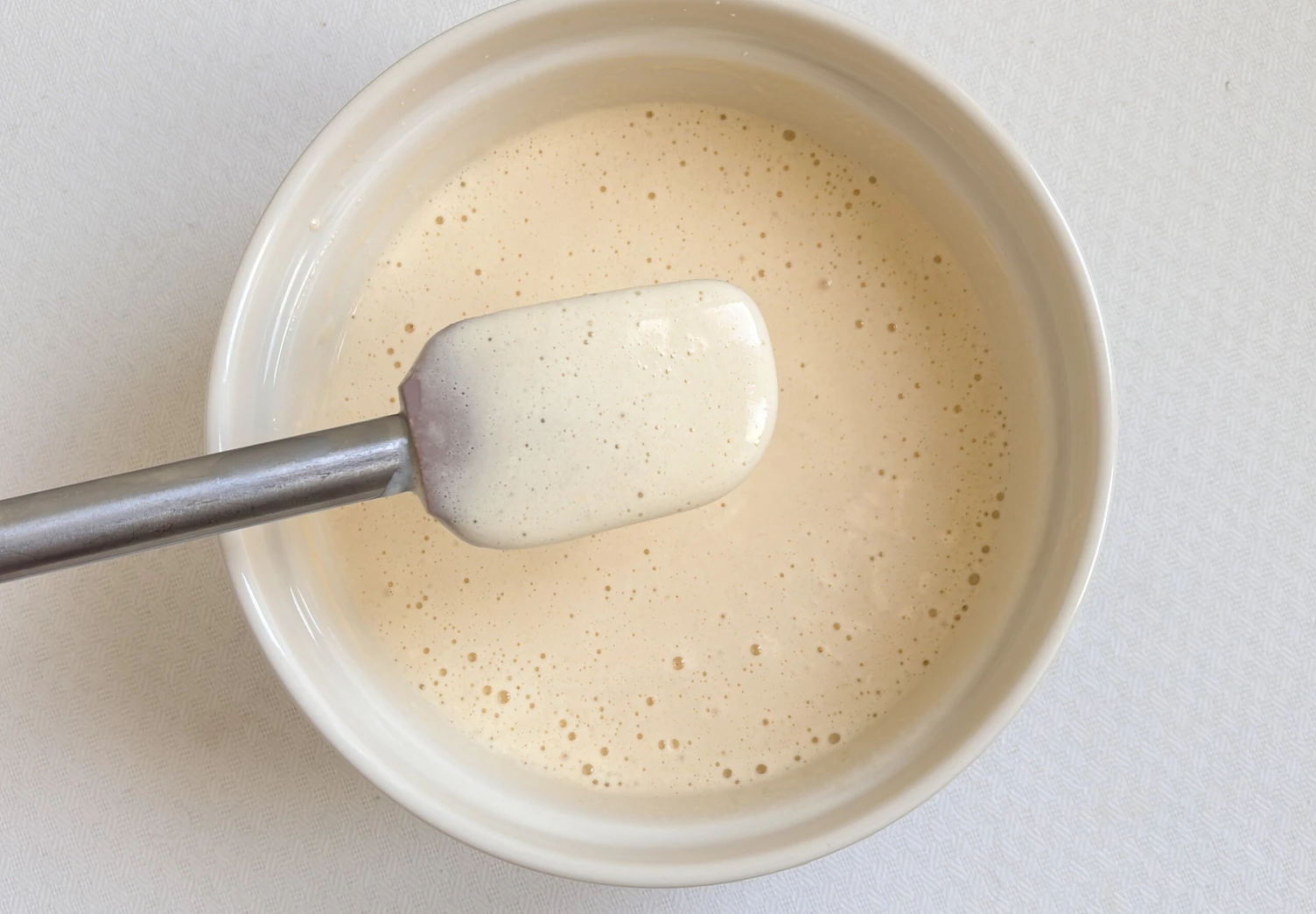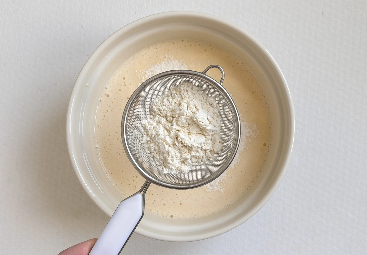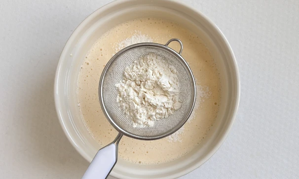К яичной массе добавьте опару, аккуратно перемешайте.