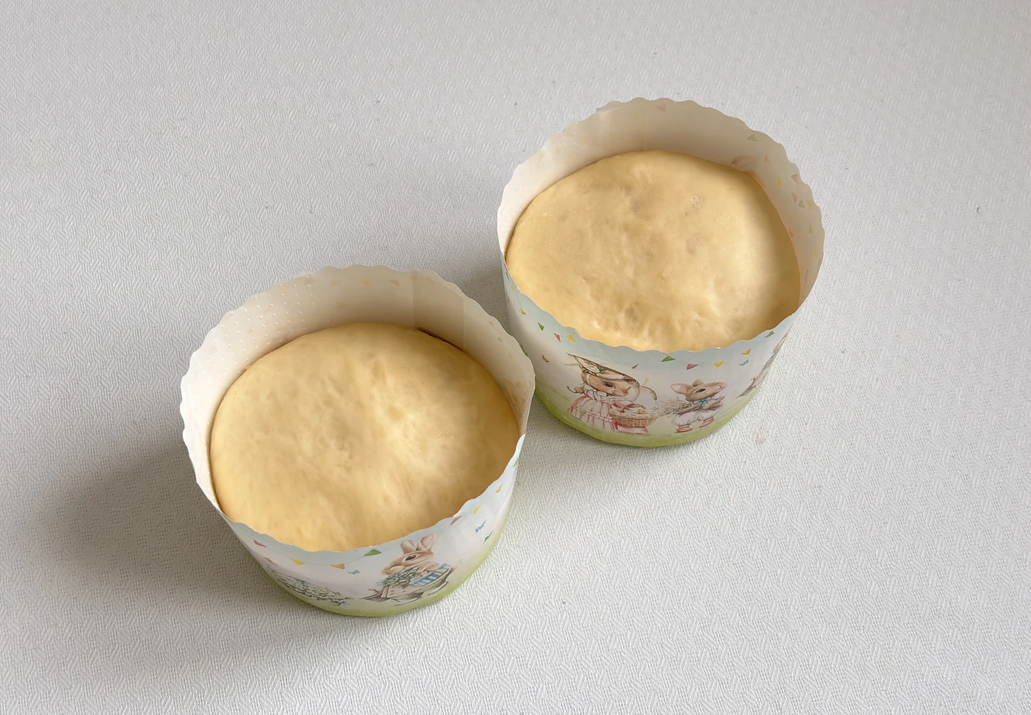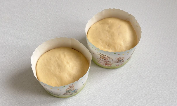 Подошедшее тесто разделите на две части и выложите в формы 12х9 см. Оставьте куличи на расстойку ещё на 20–30 минут, а после поставьте в духовку, разогретую до 170°C, на 30–40 минут.