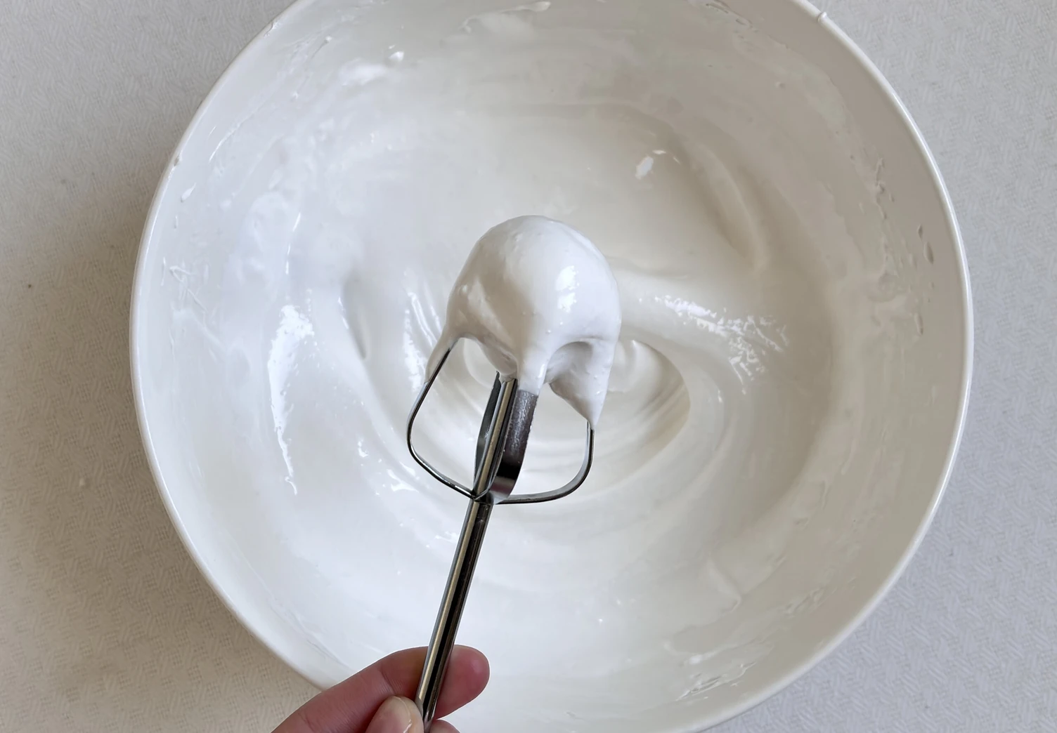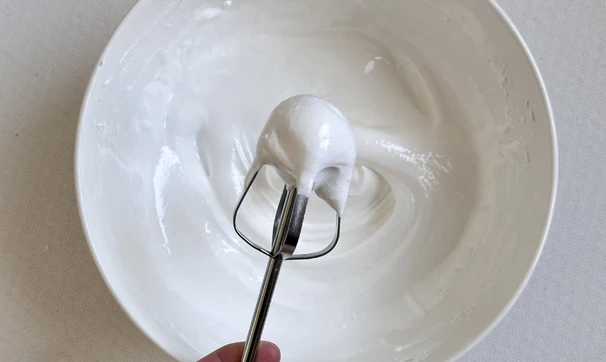 Смешайте белок с сахаром, нагрейте на водяной бане до полного растворения сахара, добавьте сок лимона и взбейте миксером на максимальной скорости до устойчивых пиков.