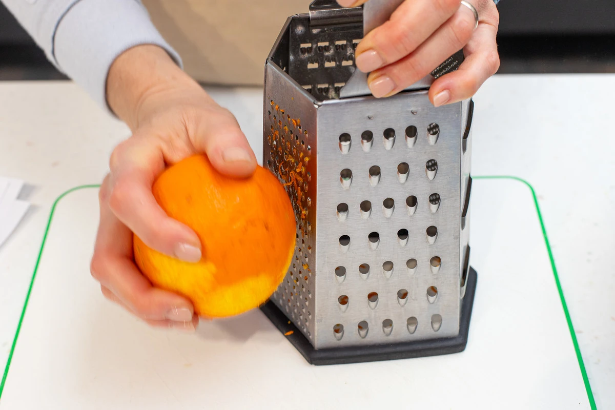 С апельсина снимите цедру, добавьте её в тесто и перемешайте.