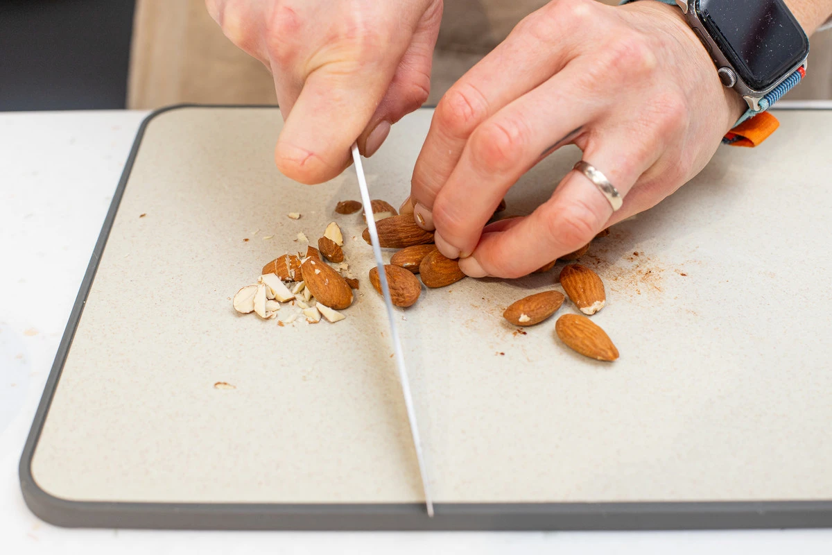 Орехи порубите ножом.