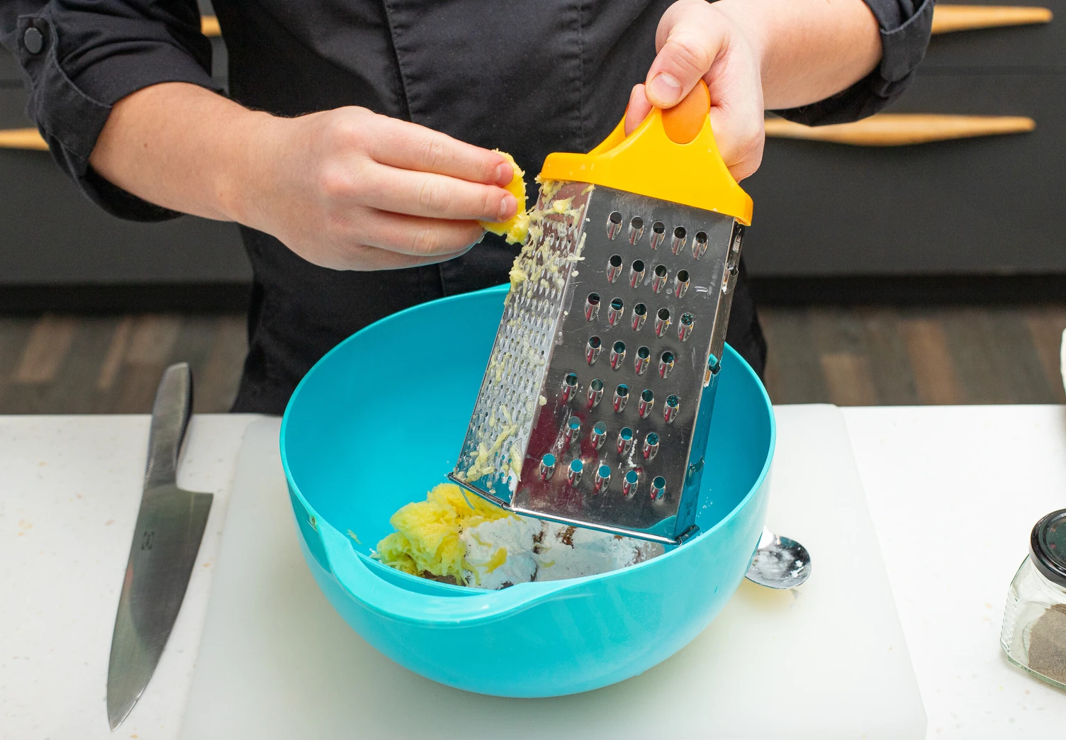 Картофель натрите на крупной тёрке.