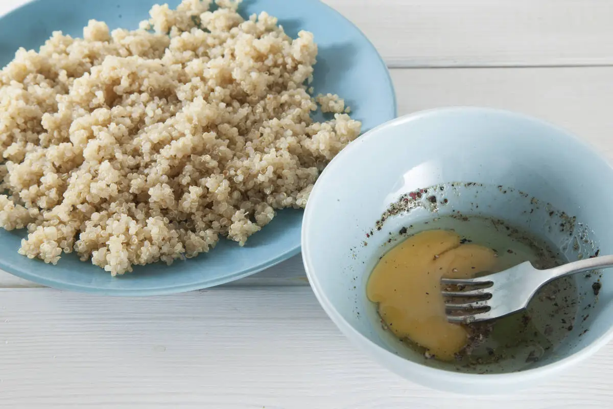 Киноа промойте в холодной воде и отварите до готовности около 15-ти минут, выложите в плоскую тарелку.