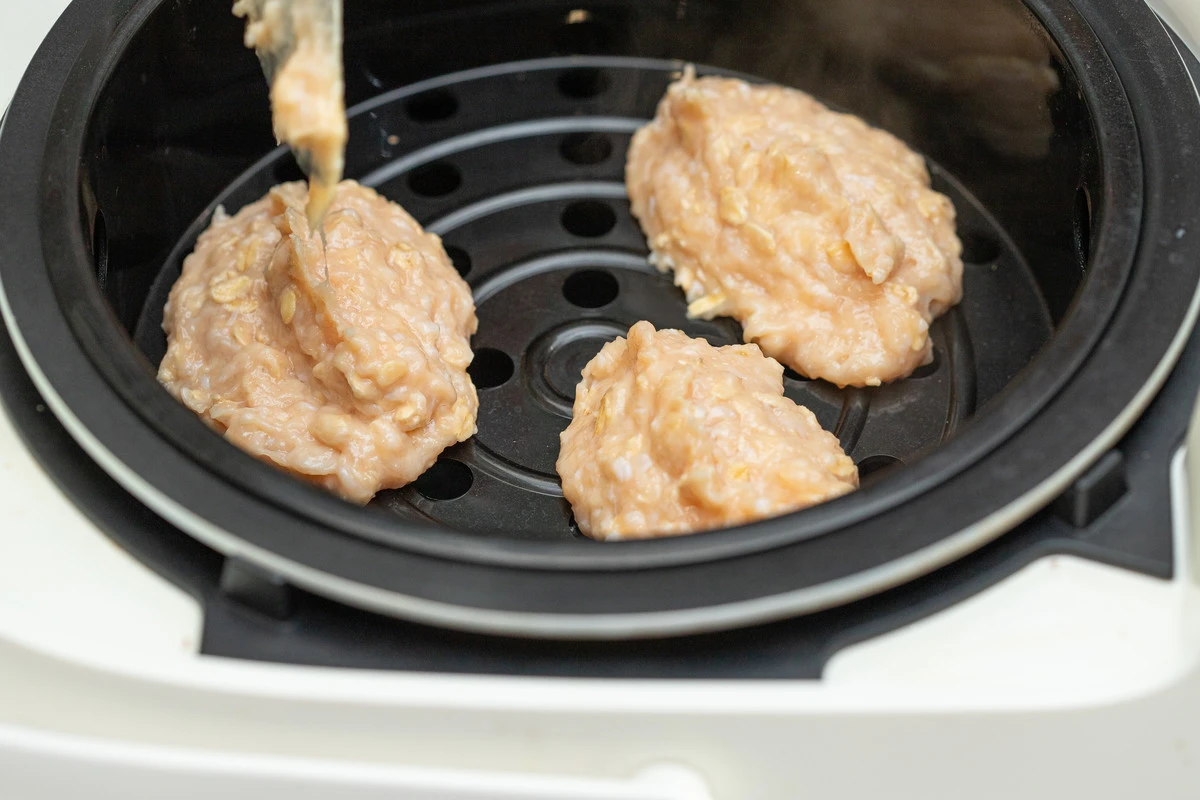 Сформируйте котлеты и выложите в смазанную растительным маслом ёмкость для приготовления на пару.