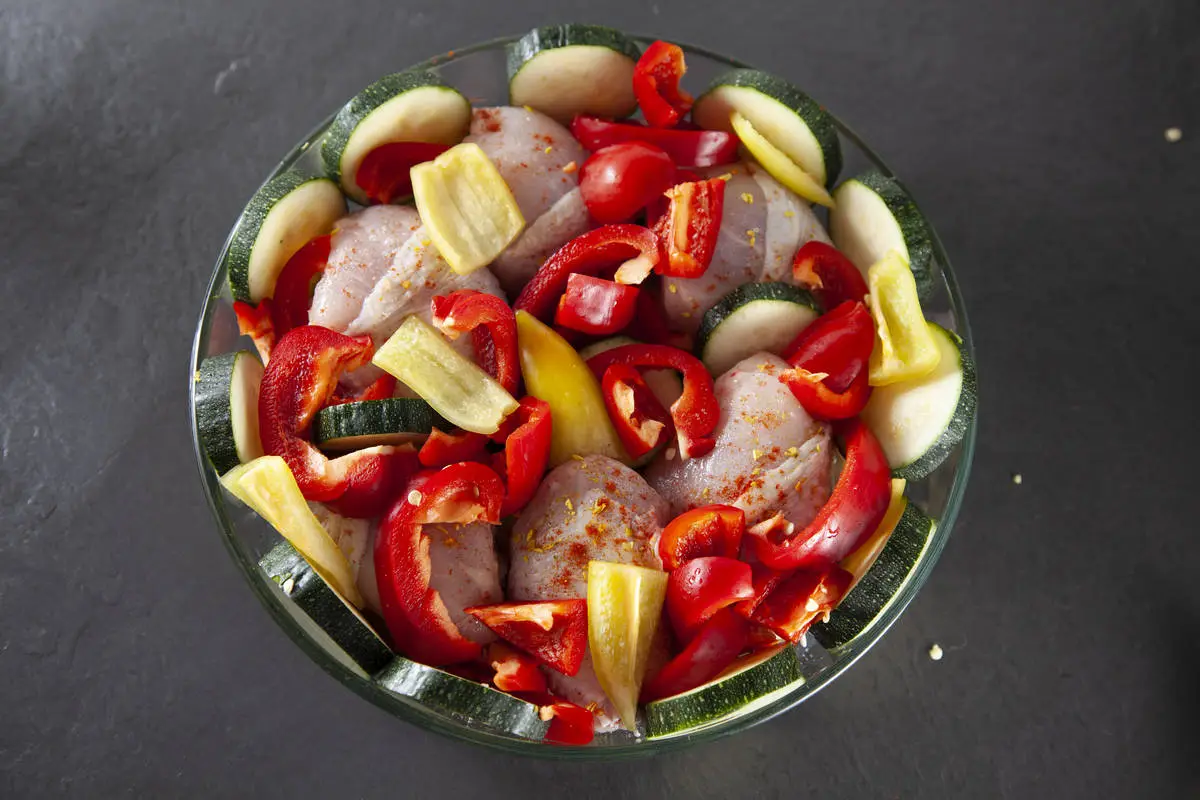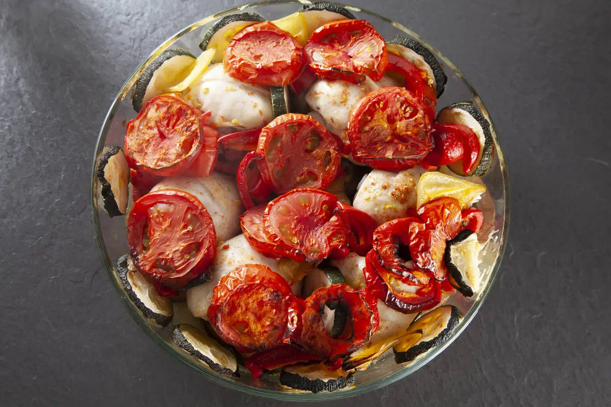 Запеченные курица и овощи – это всегда выход! Вместо привычной картошки возьмите баклажаны, цуккини, перцы, и ужин получится не только очень вкусным, но и не слишком тяжелым.