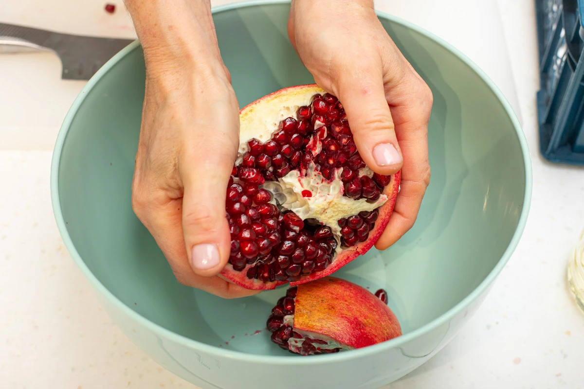 Гранат помойте и почистите. Для этого рецепта вам понадобятся зёрна одного целого граната.