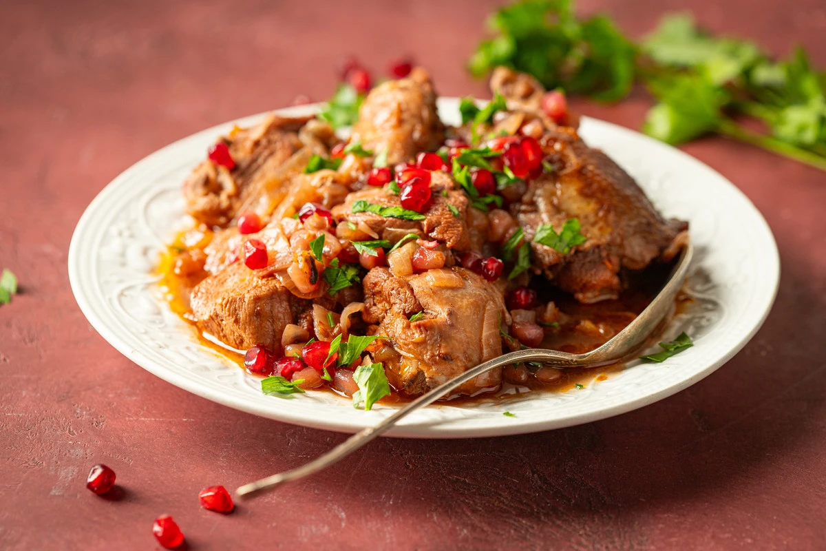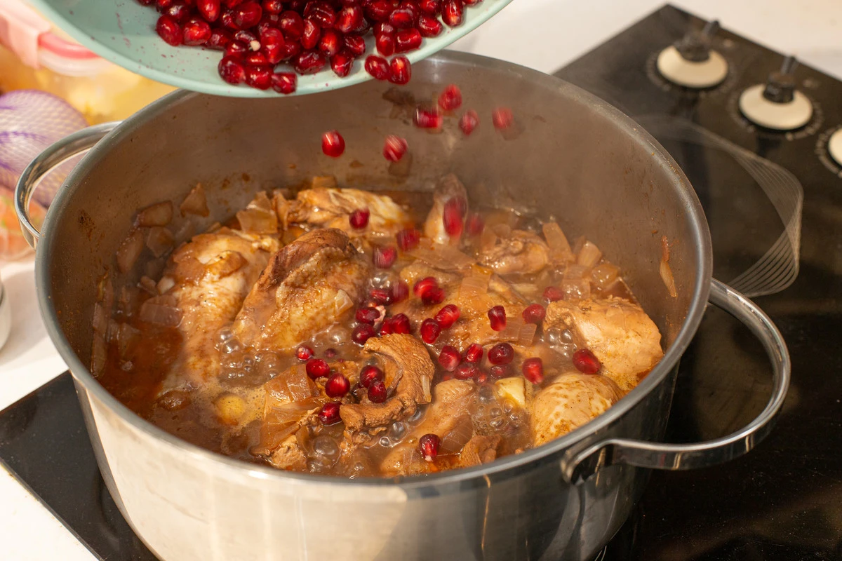 Курица в гранатовом соусе — блюдо с лёгкими нотками азербайджанской кухни. Поможет разнообразить ваше меню, когда привычные способы приготовления курицы уже надоели.