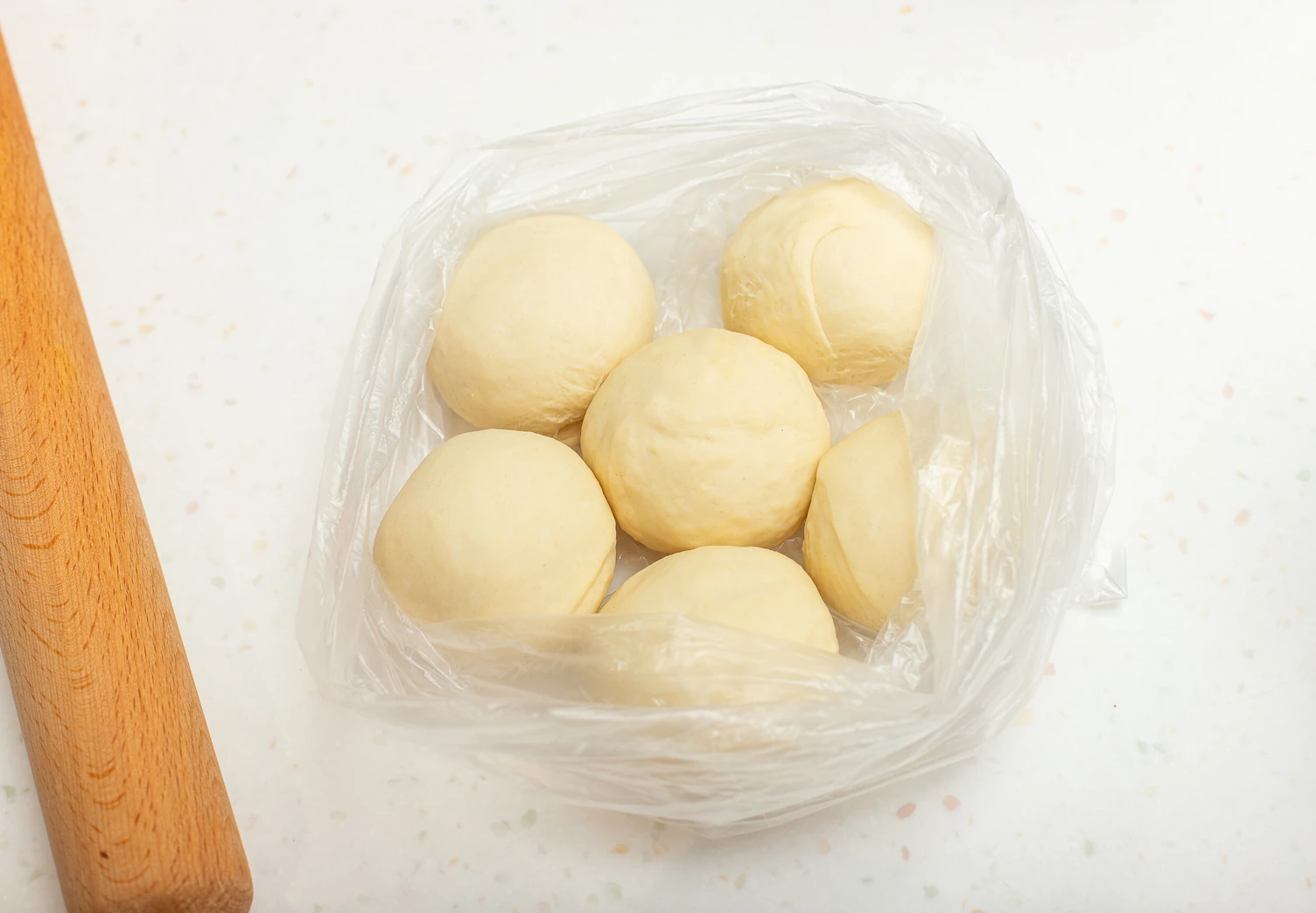 Разделите тесто на 6 равных частей, скатайте шарики.