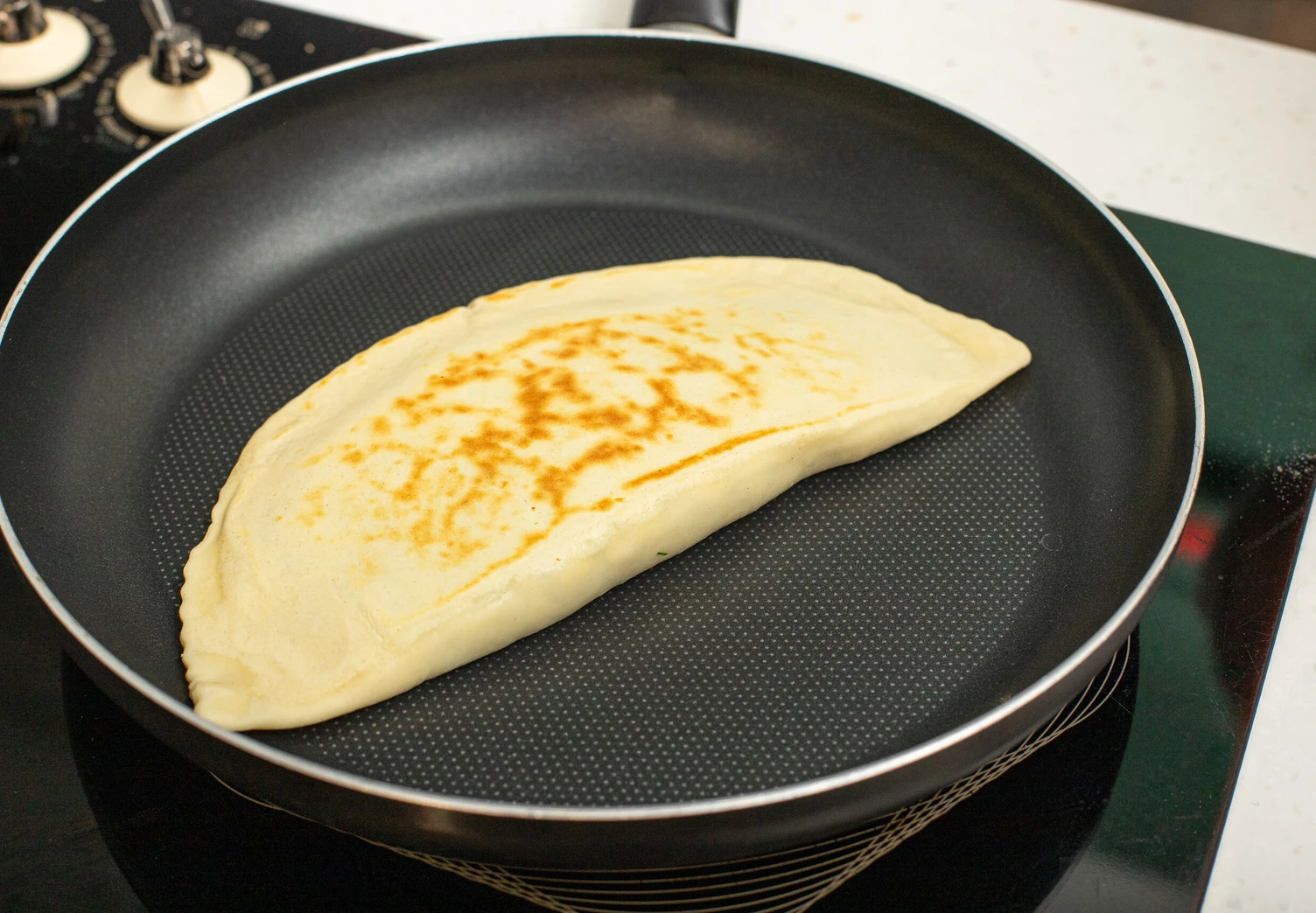 Обжаривайте кутабы по 1–2 минуты с каждой стороны до золотистого цвета.
