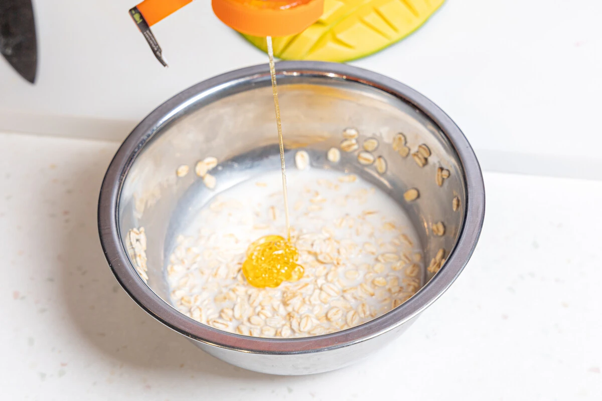 Добавьте мёд, перемешайте, переложите в банку и оставьте на ночь.
