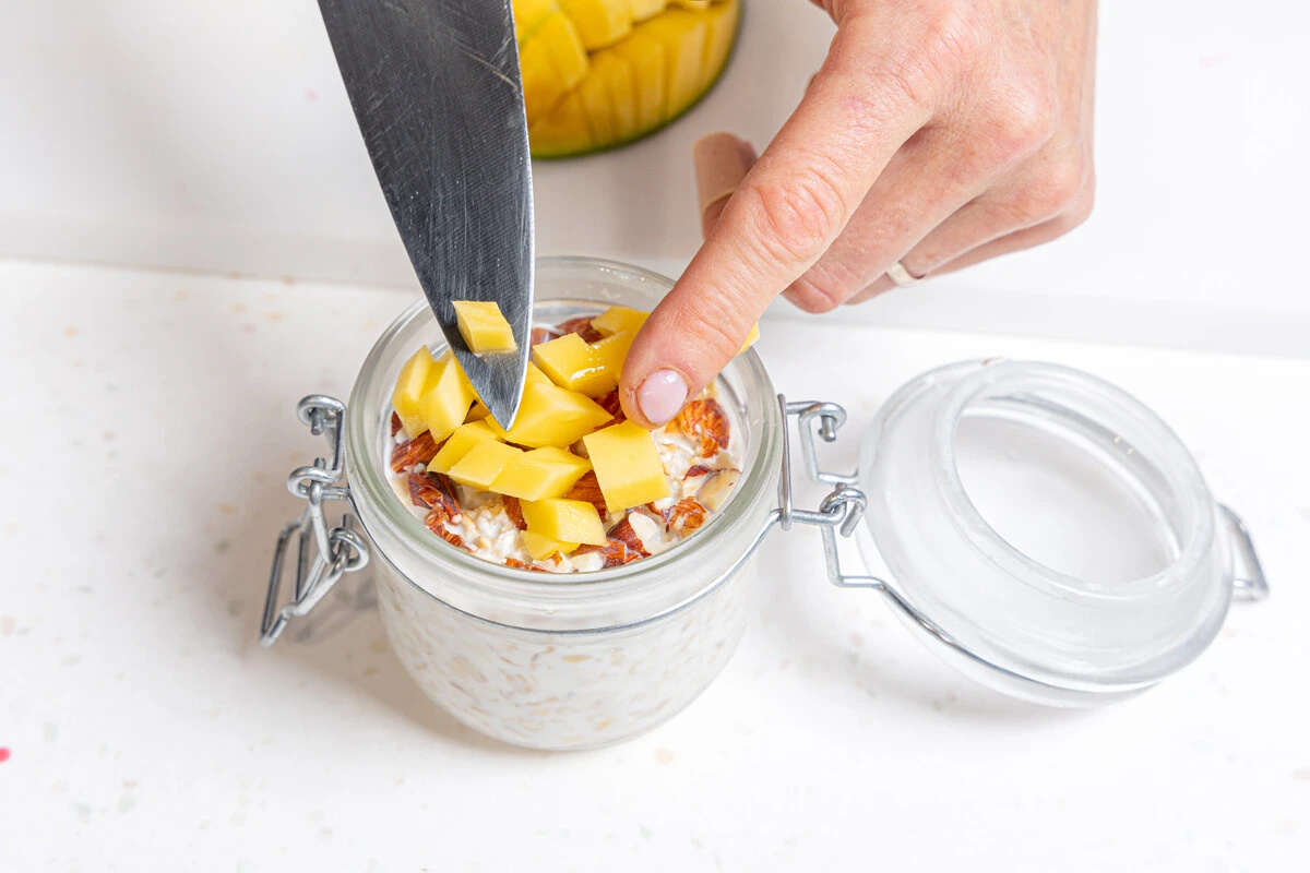 Рецепт «Ленивая овсянка в банке на козьем молоке с манго»