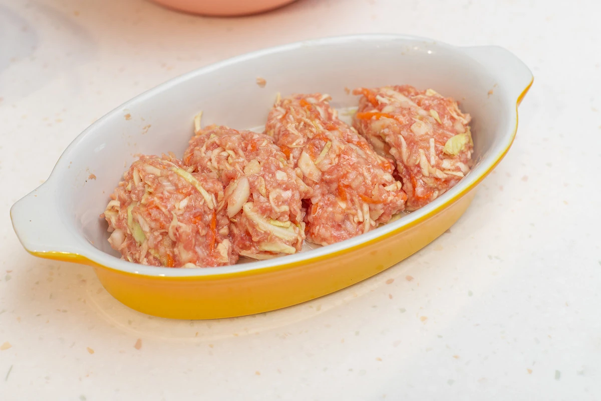 Сформируйте небольшие котлетки и выложите в форму для запекания.