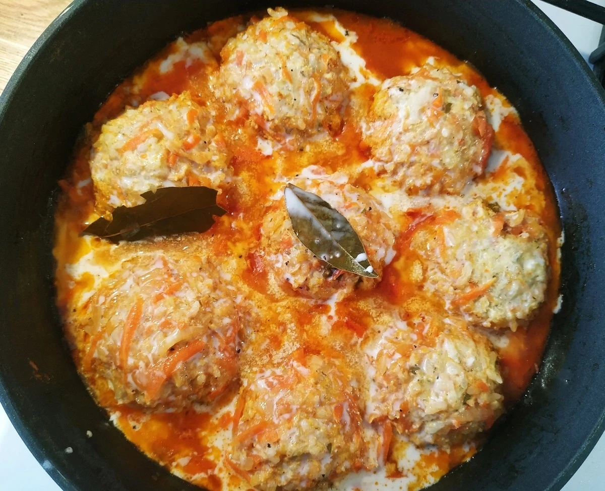 Залейте получившейся смесью голубцы, при желании добавьте лавровый лист и тушите под крышкой минут 50.