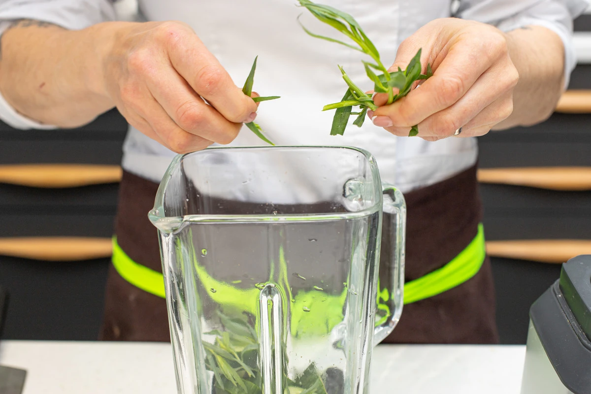 Добавьте листики тархуна, слегка перетерев их в руках.