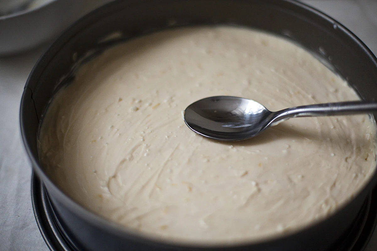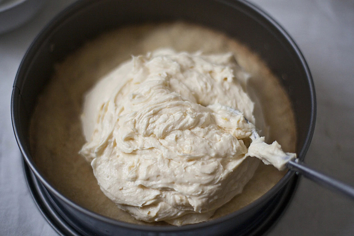 Выложите творожную массу на выпеченную основу, разровняйте.