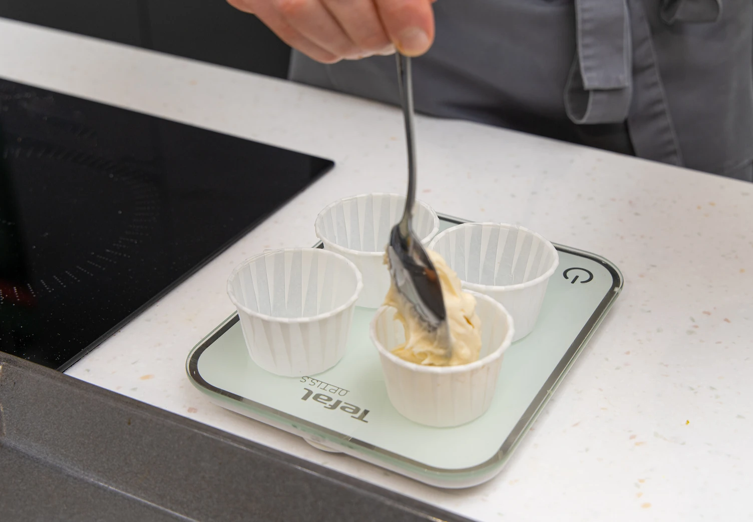 Выложите тесто (по 60 г) в формочки и поставьте в духовку, разогретую до 190 °C, на 19-20 минут.