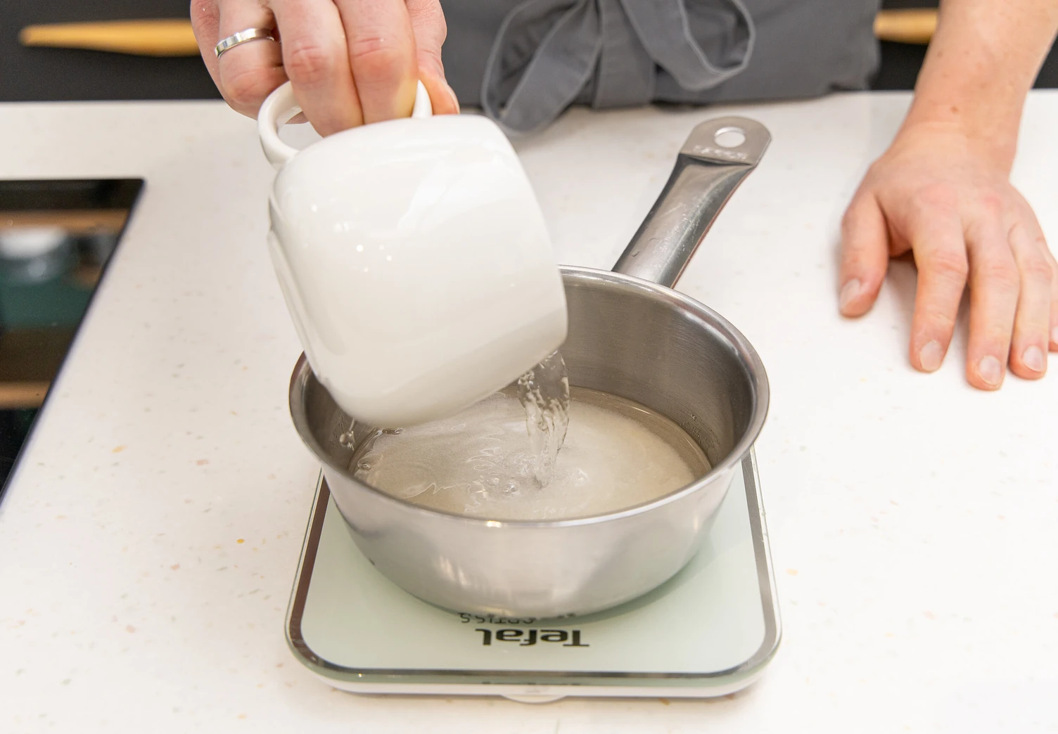Для меренги смешайте в сотейнике воду, сахар и агар-агар и поставьте на огонь.