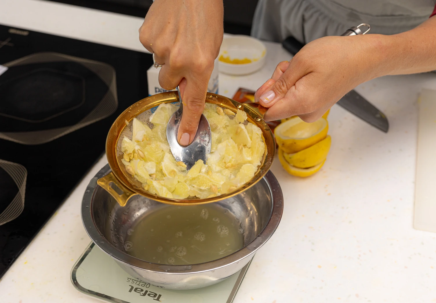 Порубите мякоть ножом, затем протрите через сито. Понадобится 30 мл сока.