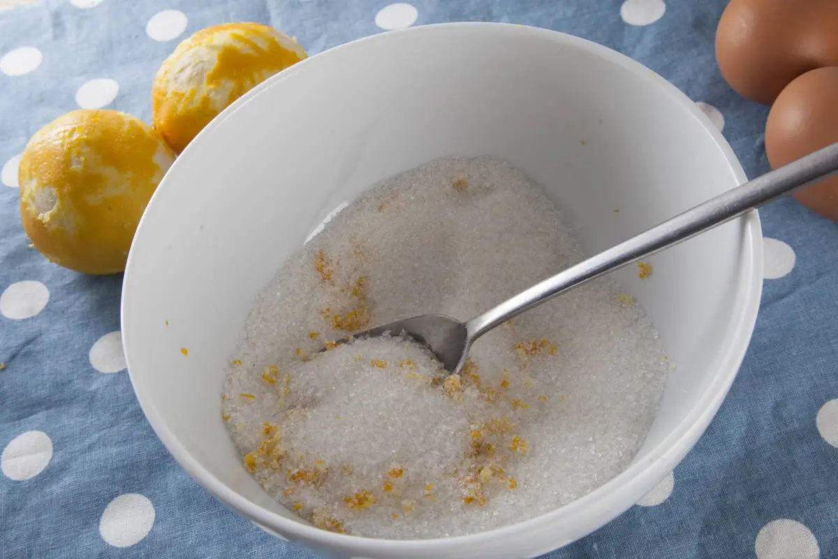 С двух лимонов снимите цедру, из всех лимонов выжмите сок, смешайте с цедрой и сахаром.