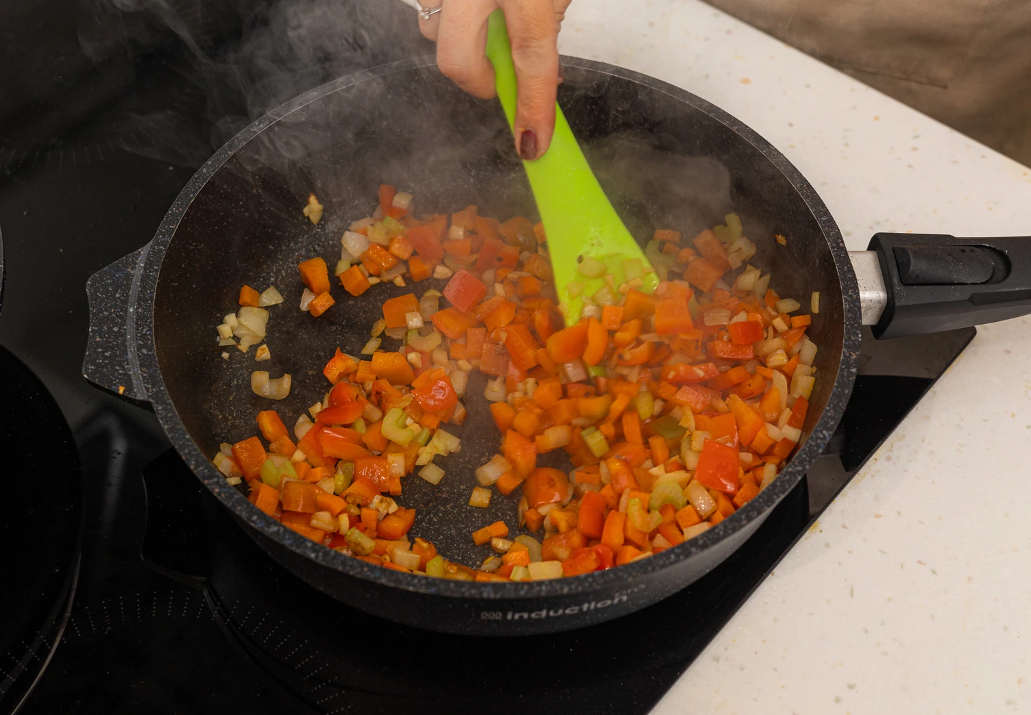 Разогрейте сковородку с растительным маслом и обжаривайте овощи в течение 7–10 минут. В конце добавьте соль и специи по вкусу.