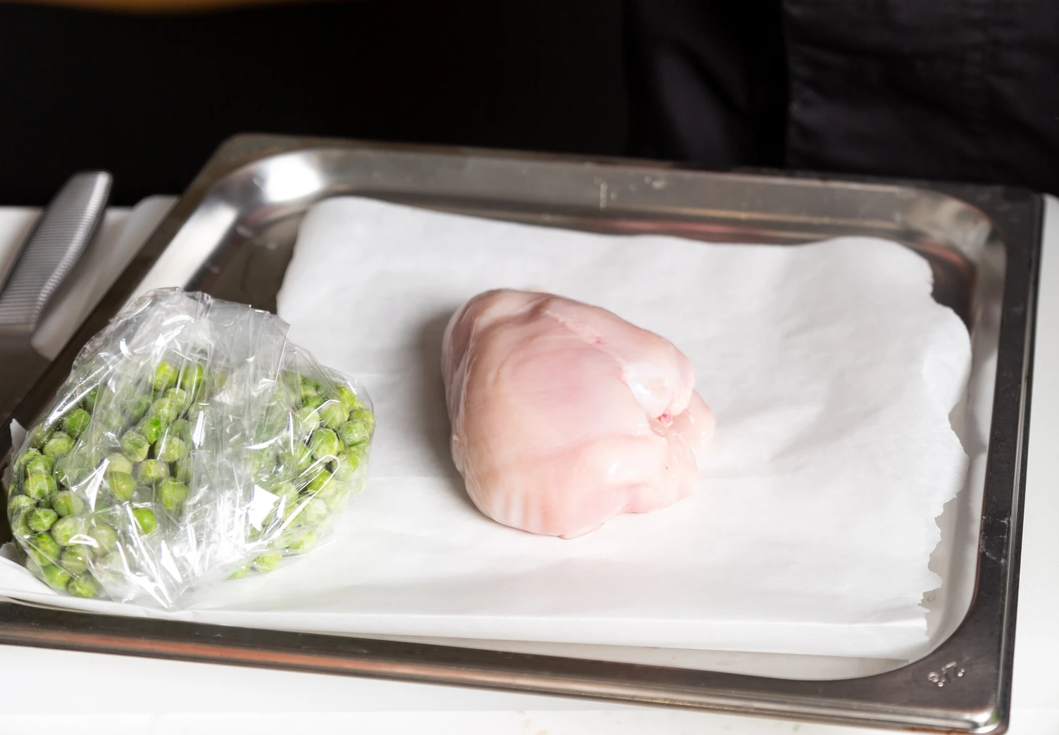 Горошек также запеките в рукаве при 200 градусах 2–3 минуты.