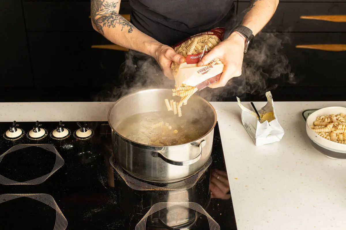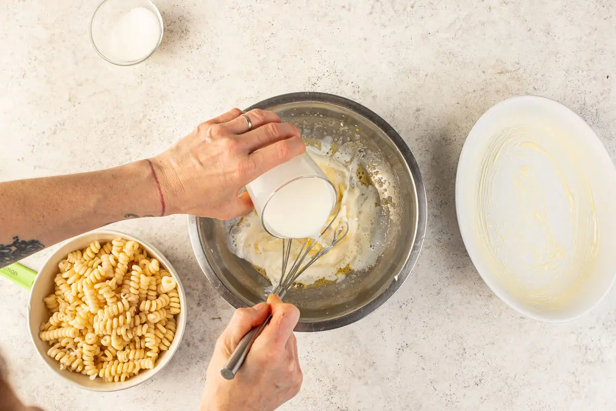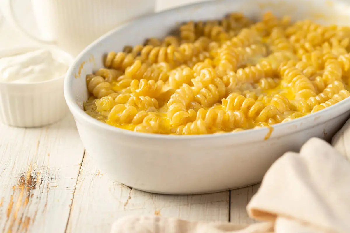 Разогрейте духовку до 220 °C и запекайте макаронник 10-12 минут до золотистости.