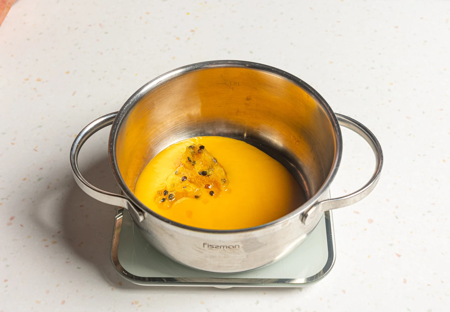 Для начинки смешайте пюре обоих видов и нагрейте до пара.