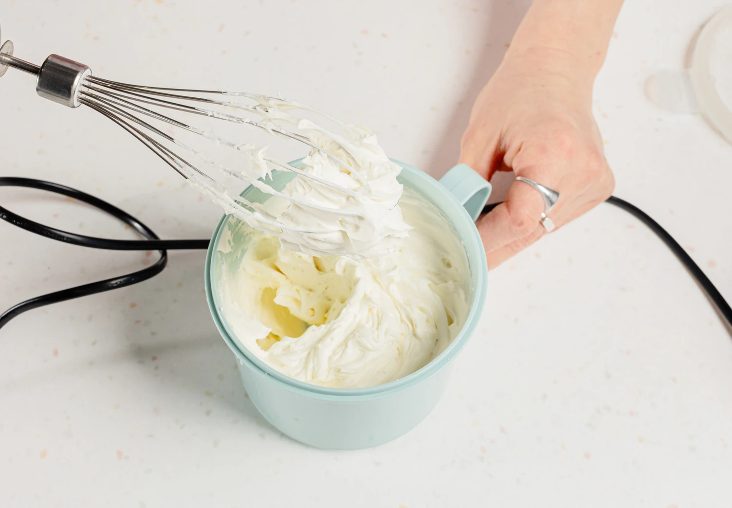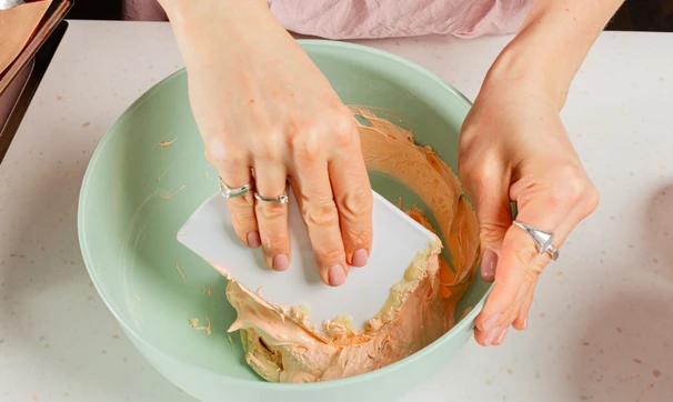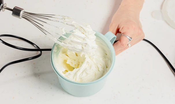Охлаждённый ганаш взбейте миксером до пышной устойчивой массы и переложите в кондитерский мешок.