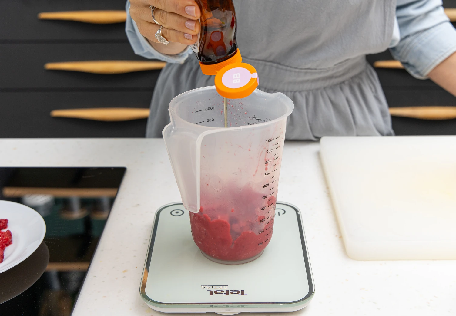 Для замороженной версии чая смешайте весь имбирный сок с малиной и мёдом и распределите по силиконовой форме, используя примерно ту же пропорцию: 2,5 столовые ложки ягодной смеси на порцию.