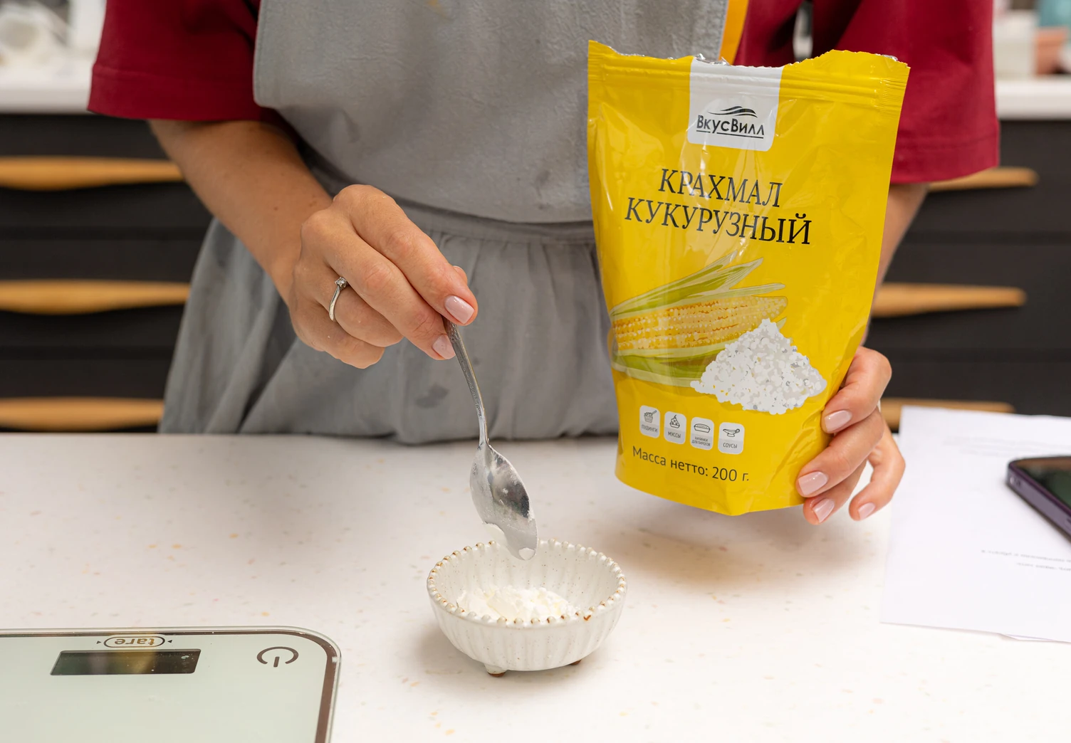 Крахмал смешайте с 2 ст. л. холодной воды и влейте получившуюся смесь тонкой струйкой в малиновое пюре, постоянно помешивая. Дождитесь загустения массы, снимите с огня и охладите.