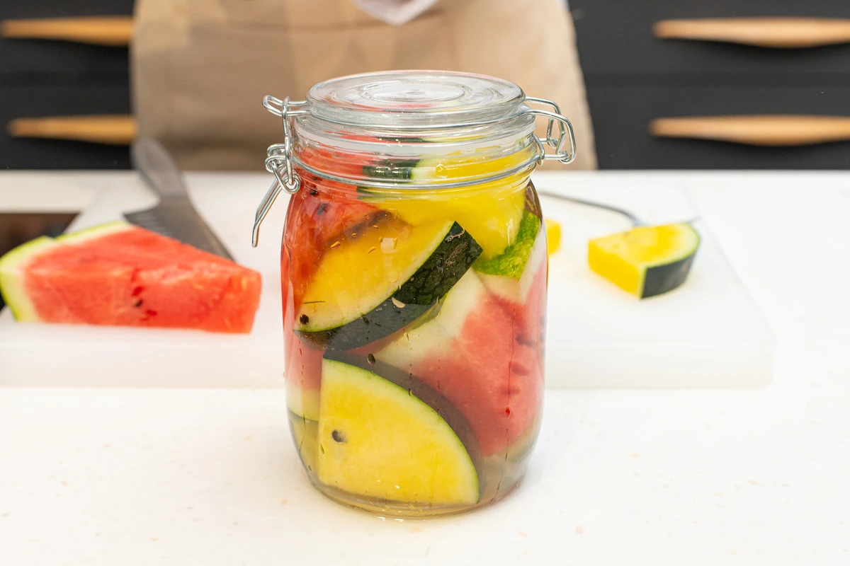Интересная закуска — быстрые маринованные арбузы. Почему мы назвали их «для ленивых»? Потому что в этом рецепте не нужно стерилизовать банки, несколько раз кипятить воду, долго возиться — просто смешайте ингредиенты для маринада и залейте арбузы.