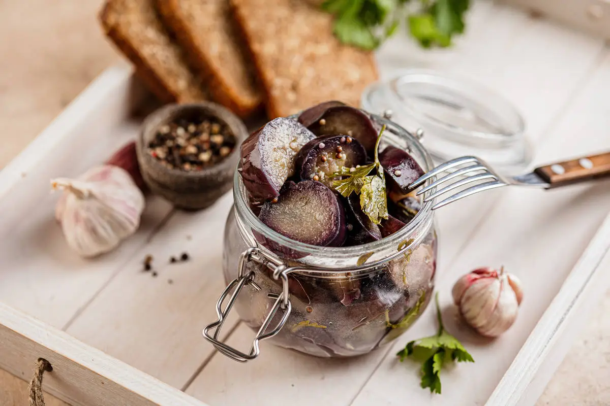 Если вы любите баклажаны, то наверняка оцените их в маринованном виде. Баклажаны получаются островатыми, по вкусу немного напоминающими грибы. В качестве закуски просто отлично, к тому же на активную готовку приходится всего 15 минут.