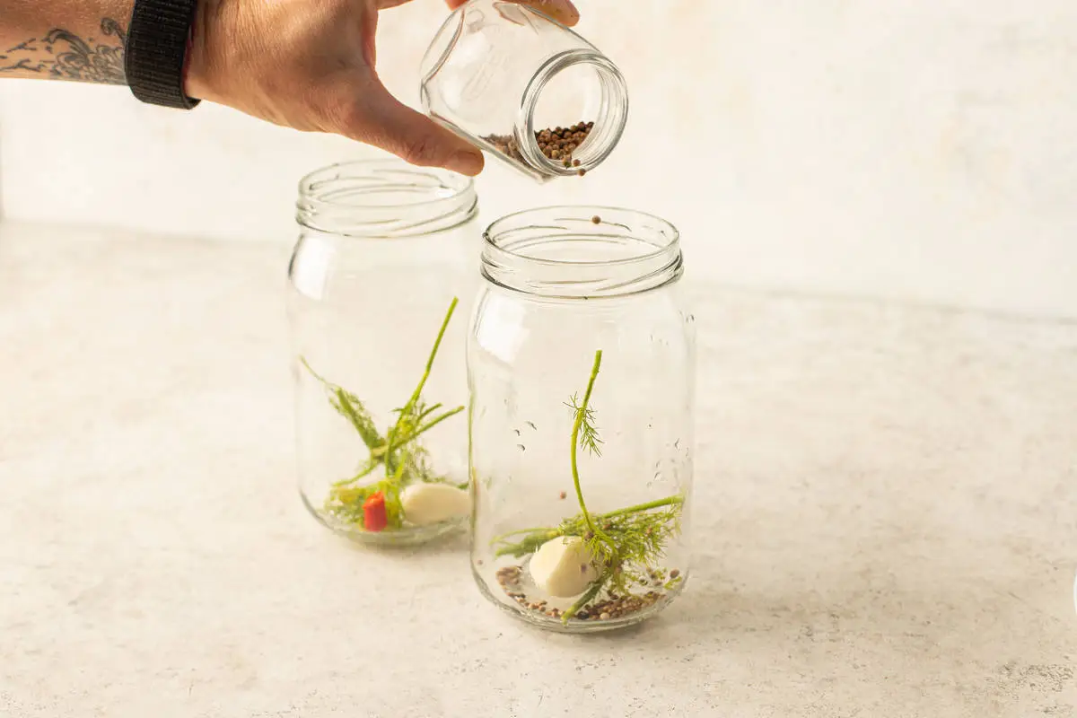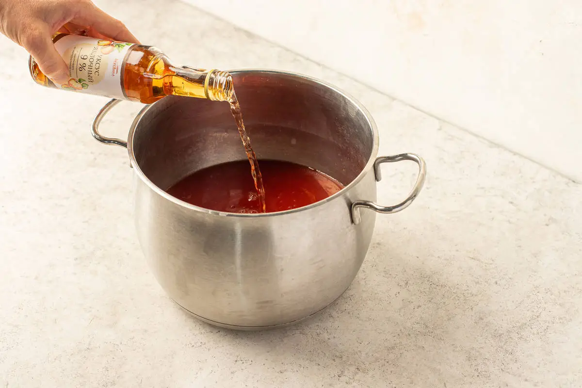 Добавьте по 2 ч. ложки уксуса в каждую банку и закатайте банки крышками.
