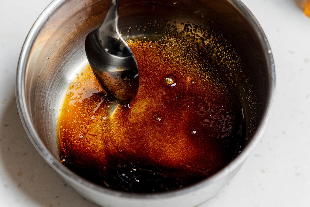 В сотейнике соедините соль, сахар и 50 мл воды, нагрейте до растворения соли. Добавьте уксус, соевый соус, паприку, молотый кориандр, острый и чёрный перец. Количество острого перца регулируйте по своему вкусу, а свежий можно заменить хлопьями сухого или молотым.