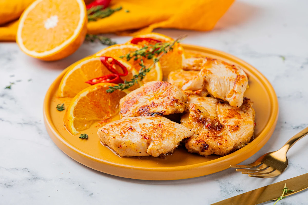 Простой рецепт вкусной курицы с нотками апельсина и специй. Филе нужно готовить быстро, тогда оно получается сочным, а для более насыщенного и нежного вкуса лучше предварительно промариновать его.